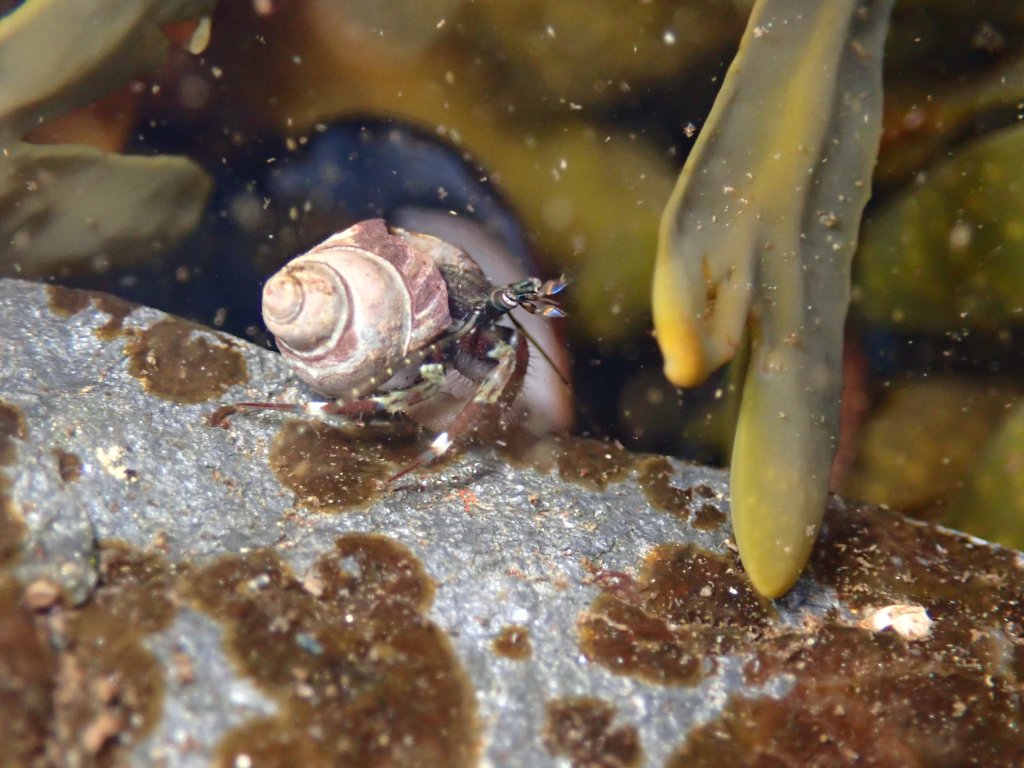 Being a little over 2000 miles north of where I am accustomed to tide pooling, Alaska obviously had a wide range of fauna that I had never seen before. While some species and groups overlapped, many others simply had no shared species that I would see at home. Crustacea is certainly one of these families. No blueband hermit crabs or striped shore crabs were to be seen, which are the two most common species in SoCal. Pacific hairy hermit crabs (Pagurus hirsutiusculus) took the place of bluebands, and the “shore crab” equivalent in number and seemingly ecological function were graceful kelp crabs (Pugettia gracilis) and northern kelp crabs (Pugettia producta).